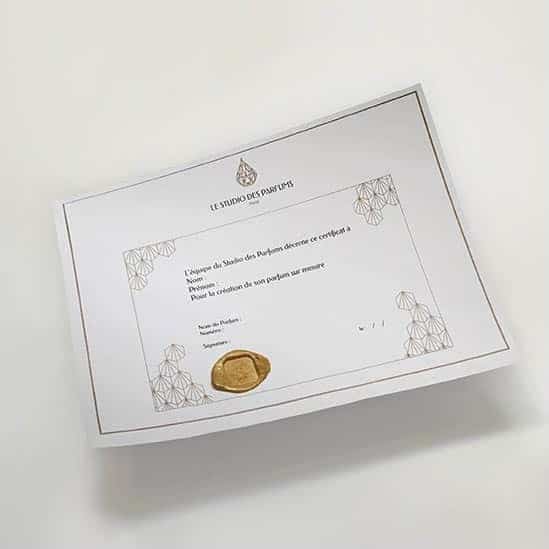 Complete your olfactory workshop by choosing our apprentice perfumer diploma. It will be printed in your name and signed by one of our expert perfumers.